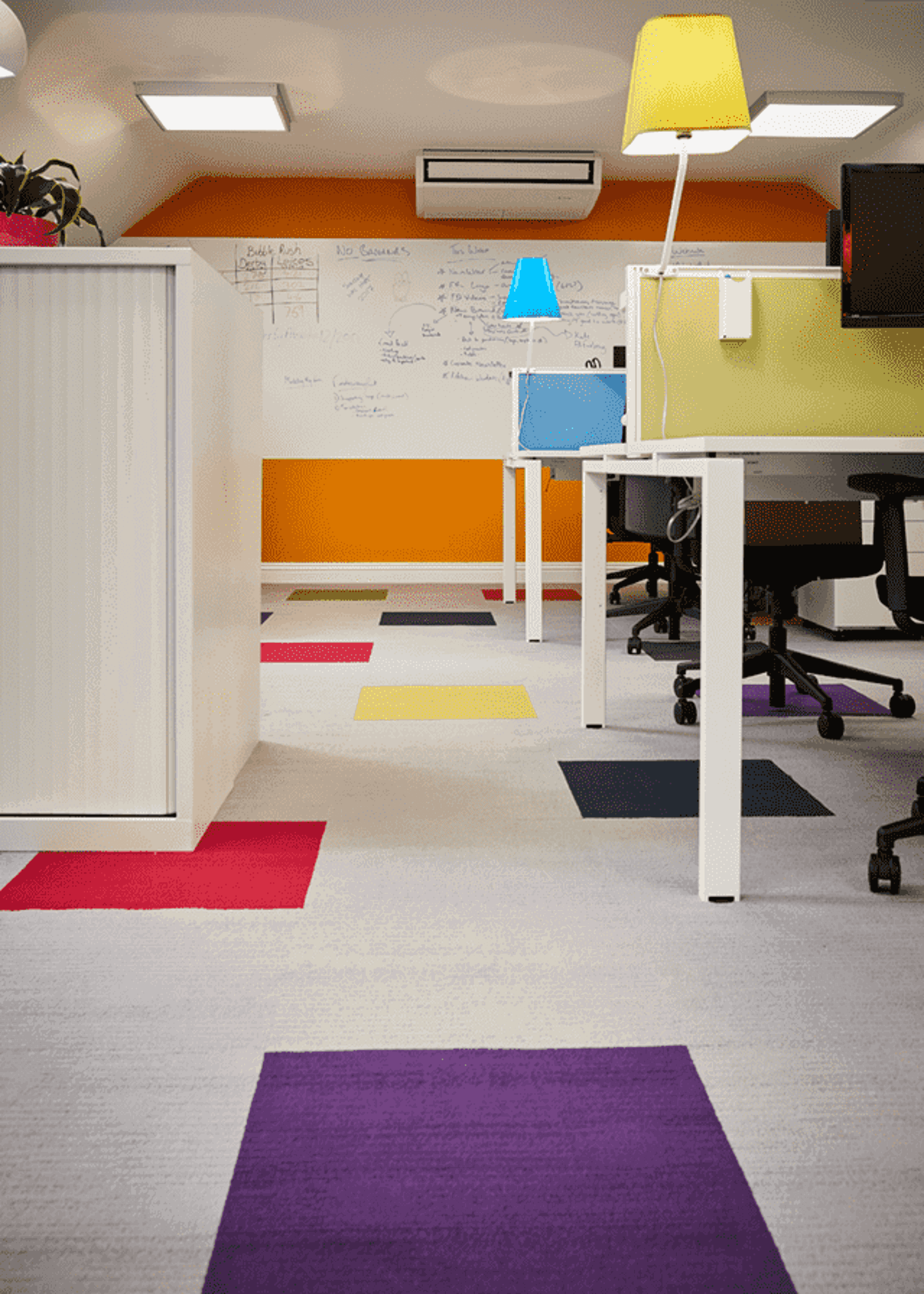 The formerly cramped space was redesigned to create a modern, open plan workspace which encourages collaborative working. Designed to be a welcoming environment, the refurbished interior embraces vibrant colours on furniture, floors and walls which showcase the Rainbows brand.